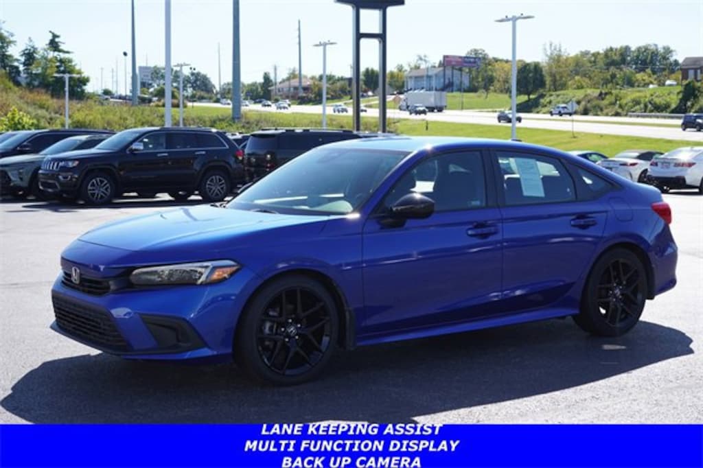 Jeff Wyler Florence Buick GMC is honored to offer this gorgeous 2024 Honda Civic Sport in Blue. LOCAL TRADE IN 8 Speakers, Adaptive Cruise Control: Adaptive Cruise Control (ACC) with Low-Speed Follow, Apple CarPlay/Android Auto, Auto High-beam Headlights, Automatic temperature control, Bumpers: body-color, Delay-off headlights, Exterior Parking Camera Rear, Fully automatic headlights, Illuminated entry, Leather steering wheel, Power door mirrors, Radio: 180-Watt Audio System, Remote keyless entry, Steering wheel mounted audio controls, Wheels: 18 Gloss Black Alloy, 4-Wheel Disc Brakes, ABS brakes, Air Conditioning, AM/FM radio, Brake assist, Cloth/Leatherette Seating Surfaces, Driver door bin, Driver vanity mirror, Dual front impact airbags, Dual front side impact airbags, Electronic Stability Control, Emergency communication system: HondaLink, Four wheel independent suspension, Front anti-roll bar, Front Bucket Seats, Front Center Armrest, Front reading lights, Knee airbag, Leather Shift Knob, Low tire pressure warning, Occupant sensing airbag, Outside temperature display, Overhead airbag, Panic alarm, Passenger door bin, Passenger vanity mirror, Power steering, Power windows, Radio data system, Rear anti-roll bar, Rear side impact airbag, Rear window defroster, Security system, Speed control, Speed-sensing steering, Tachometer, Telescoping steering wheel, Tilt steering wheel, Traction control, and Trip computer Our PRE-OWNED vehicles are put through a rigorous 167- POINT QUALITY ASSURANCE INSPECTION along with an average amount of over $1,400.00 SPENT to recondition each vehicle so we can be sure to deliver you the highest quality vehicle like you deserve! ***ONLINE PRICE DOES NOT INCLUDE WYLER FAMILY FIRST PACKAGE*** Stop by 1154 Burlington Pike Florence KY 41402to see for yourself, or give us a call @ 859-525-8001 to schedule your test drive!